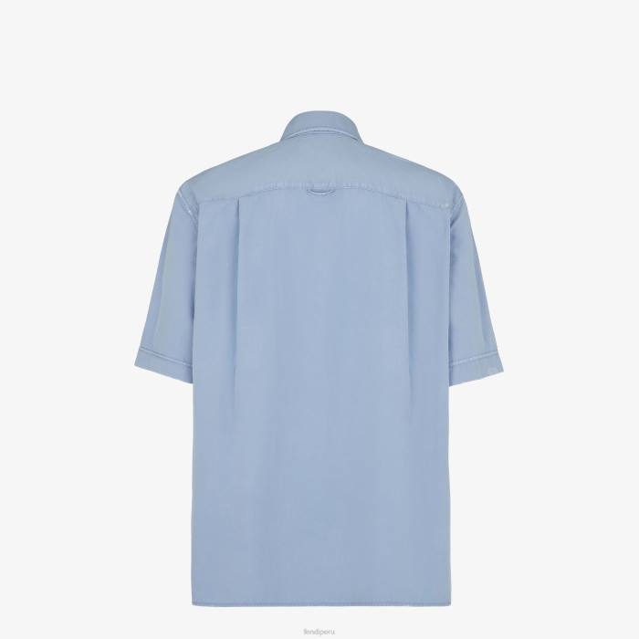 Camisa de manga corta con bolsillo de parche en el pecho. aberturas laterales en el bajo y pinzas en la espalda. Cierre con botones automáticos cubiertos. confeccionado en algodón teñido de color azul claro. adornado con una etiqueta fendi roma bordada a juego y detalles desgastados con efecto desgastado.