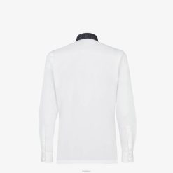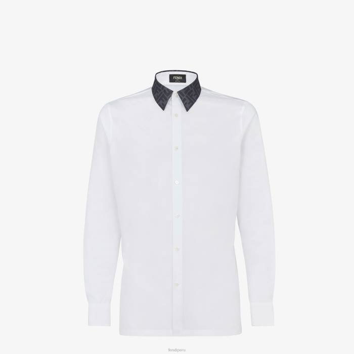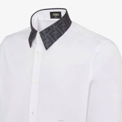 Camisa regular fit con cuello estilo italiano. cierre de botones. hecho de algodón blanco. el cuello de seda está personalizado con un motivo ff en jacquard gris antracita.