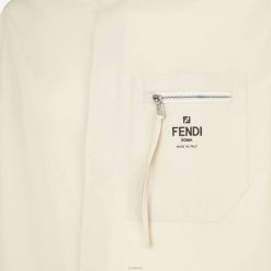 Camisa oversize de manga corta. bolsillo con cremallera en el pecho. cierre de botón cubierto. confeccionado en algodón color beige. el bolsillo del pecho está rematado con un logotipo de fendi roma en contraste y un deslizador fendi o’lock.