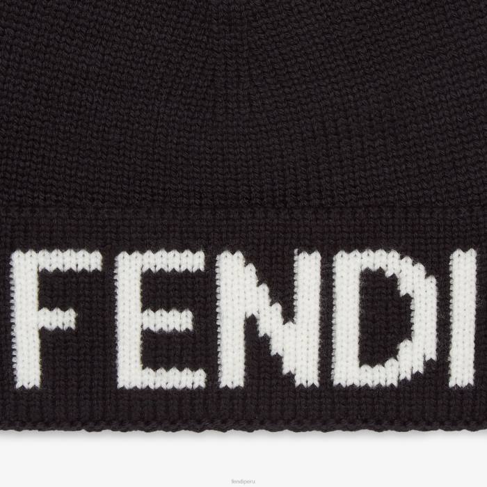 Gorro elaborado en lana blanca. acabado con letras fendi en jacquard en negro.