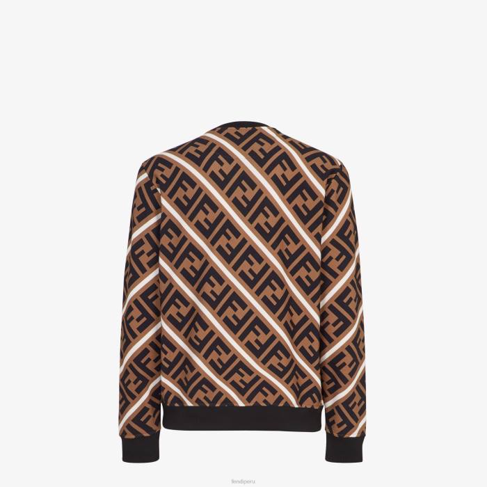 Sudadera de manga raglán y cuello redondo. confeccionado con jersey de algodón beige. Personalizado con motivo ff diagonal en negro. rayas diagonales blancas en contraste.