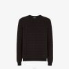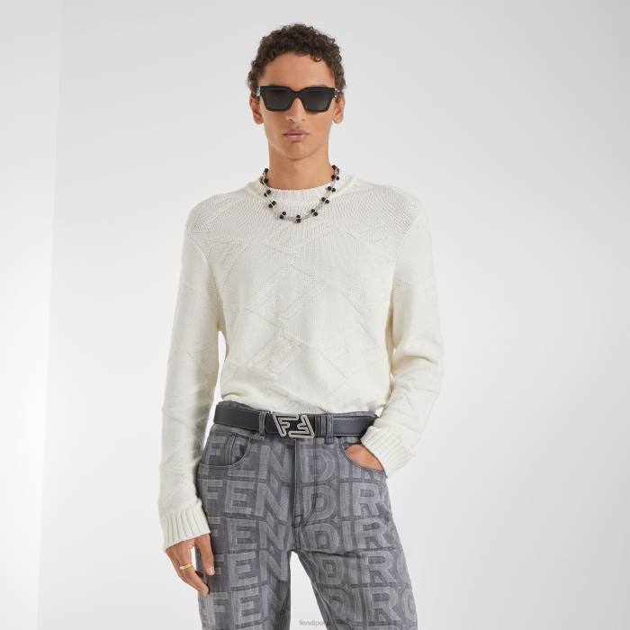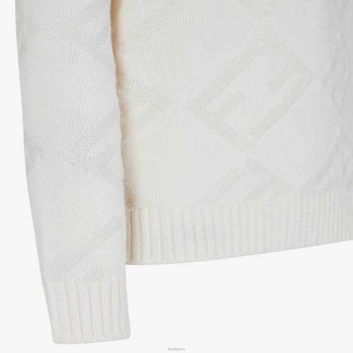 Jersey regular fit con cuello redondo y manga larga. bordes acanalados. confeccionado en lana color blanco perla. El tejido crea el motivo baguette FF en diagonal a juego. adornado con una etiqueta de Fendi en contraste en el dobladillo.