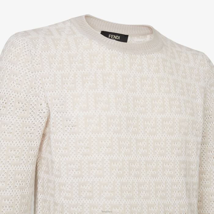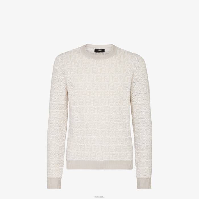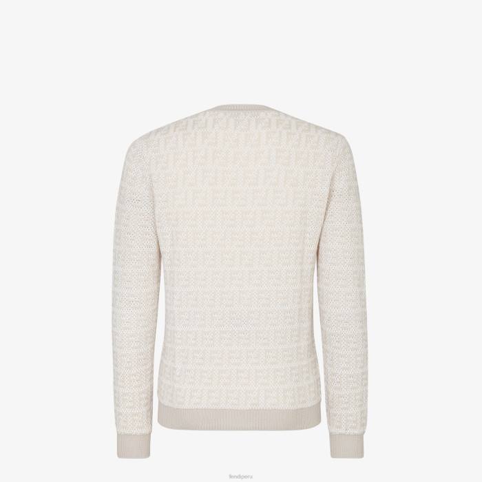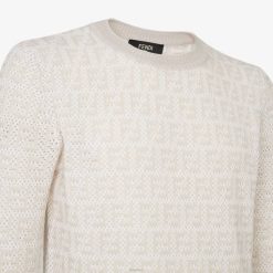 Jersey regular fit con cuello redondo y manga larga. bordes acanalados. De punto, con intarsia con motivo FF en blanco y beige.
