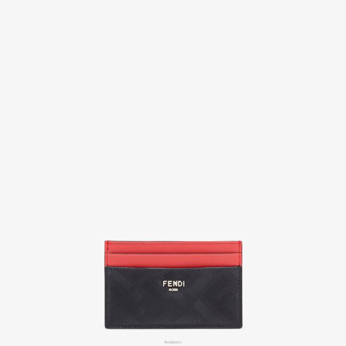 Tarjetero de piel negra con estampado ff en relieve e inscripción fendi roma de metal. detalles en piel roja.