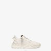Zapatillas sin cordones con cordones elásticos ajustables, cremallera lateral y suela ondulada con f grabada. Letras Fendi Flow grabadas en los talones. Confeccionado en piel de caimán de color blanco con degradado en azul claro. adornado con detalles de lycra con motivo ff. Suelas ligeras de goma blanca con detalle de f diagonal a juego.