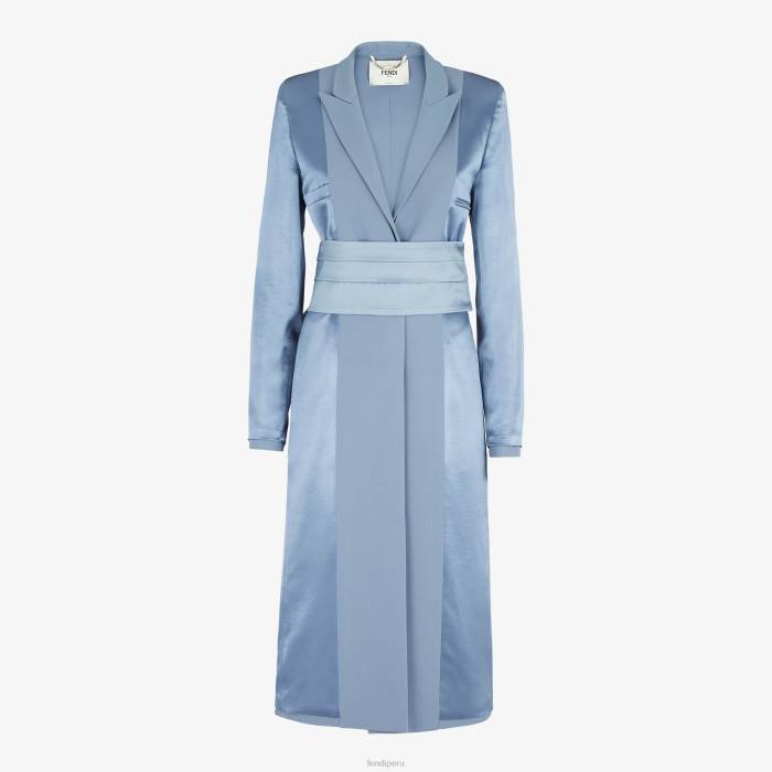 Fendi mujer abrigo de gabardina de lana y satén 2LH8E1124 vestir azul