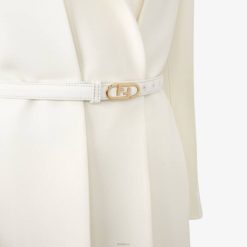 abrigo multicapa entallado. este estilo consta de un abrigo largo sin solapas y un chaleco extraíble sin espalda con solapas de pico. se pueden usar juntos o por separado. cinturón a juego con hebilla fendi o’lock de metal. hecho de lana blanca. el chaleco tiene cuello y solapas de seda blanca.