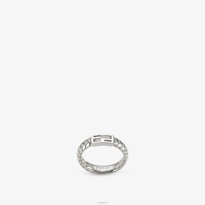 anillo con cadena de eslabones y motivo baguette ff. fabricado en metal con acabado paladio.