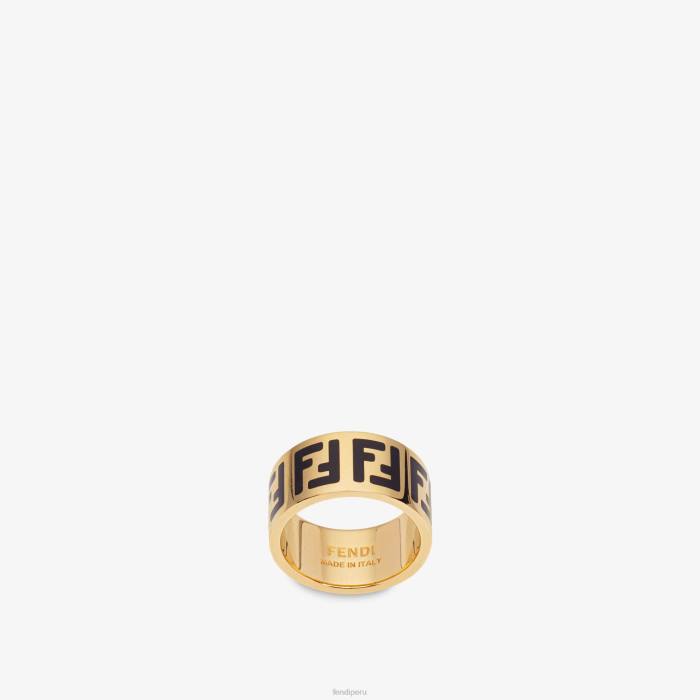 Anillo con motivo ff grabado. fabricado en metal con acabado dorado. esmaltado en tonos negros.