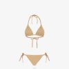 Bikini con top y braguita de triángulo reversible. Confeccionado en lycra azul. Personalizado con el motivo del espejo Fendi estampado íntegramente en colores a juego y un motivo trenzado en la parte delantera y en los laterales. bolso a juego con cordón y logo de fendi roma.