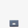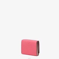 Cartera peekaboo compacta de tres pliegues con gran compartimento interno para billetes y tres tarjeteros ocultos. Monedero externo con icónico cierre giratorio. Confección en piel cuoio romano rosa. forrado en piel rosa claro. Artículos metálicos con acabado en paladio.