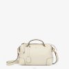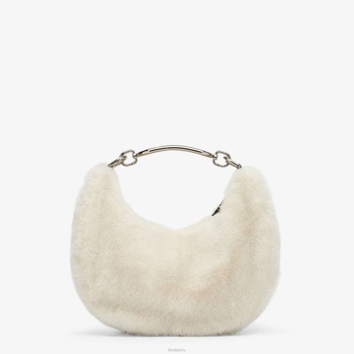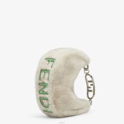 Bolso hobo pequeño confeccionado en suave visón blanquecino, decorado con metal verde y letras Fendi de plexiglás visibles al llevar el bolso debajo del brazo.