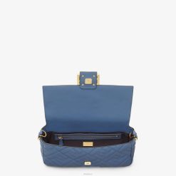 icónico bolso baguette mediano confeccionado en suave napa azul con motivo ff en relieve de textura tridimensional. decorado con un cierre ff.