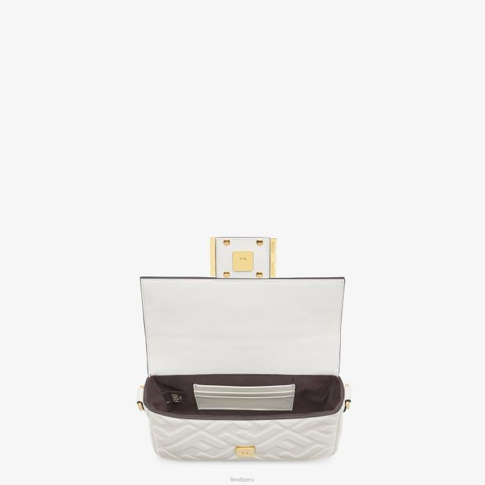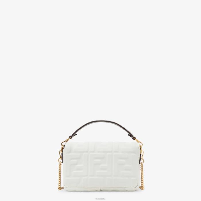 icónico bolso mini baguette confeccionado en suave napa blanca con motivo ff de textura tridimensional. decorado con cierre ff.