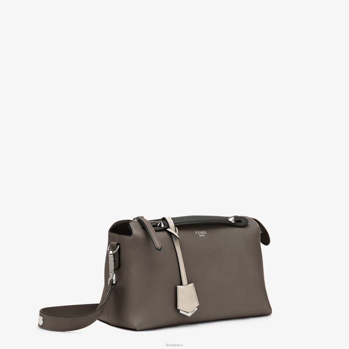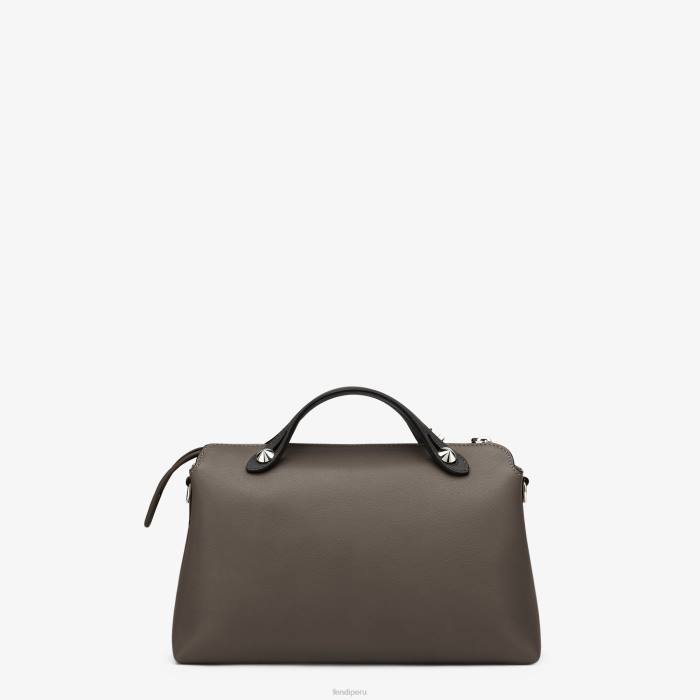 icónico bolso boston mediano por cierto confeccionado en piel gris oscuro, con cierre de cremallera.