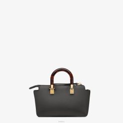 icónico bolso mini by the way boston confeccionado en piel negra con inscripción fendi roma estampada en caliente y asas rígidas de plexiglás efecto carey. cierre de cremallera.