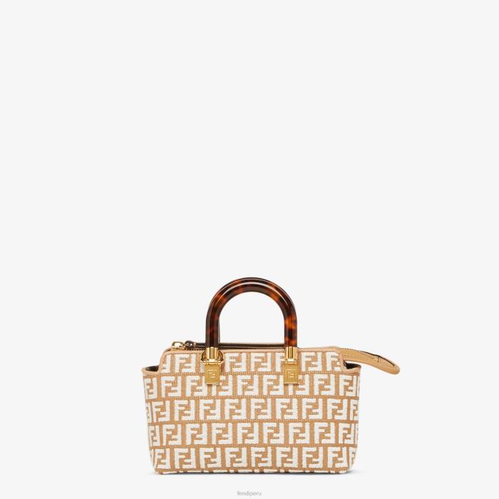 Fendi mujer bolso boston pequeño de rafia con motivo ff de tejido tapiz 2LH8E601 accesorios blanco