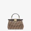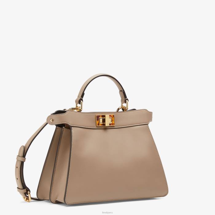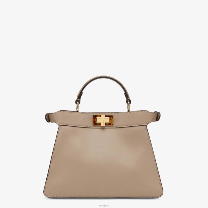 pequeño e icónico bolso peekaboo iseeu confeccionado en piel de color gris tórtola y adornado con el clásico cierre giratorio en ambos lados.