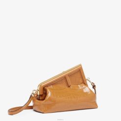 Primer bolso Fendi del tamaño perfecto para el día, confeccionado en exquisita piel de cocodrilo marrón con cierre en forma de F de metal de gran tamaño ribeteado en cocodrilo tono sobre tono.