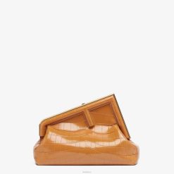 Primer bolso Fendi del tamaño perfecto para el día, confeccionado en exquisita piel de cocodrilo marrón con cierre en forma de F de metal de gran tamaño ribeteado en cocodrilo tono sobre tono.