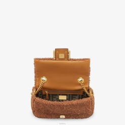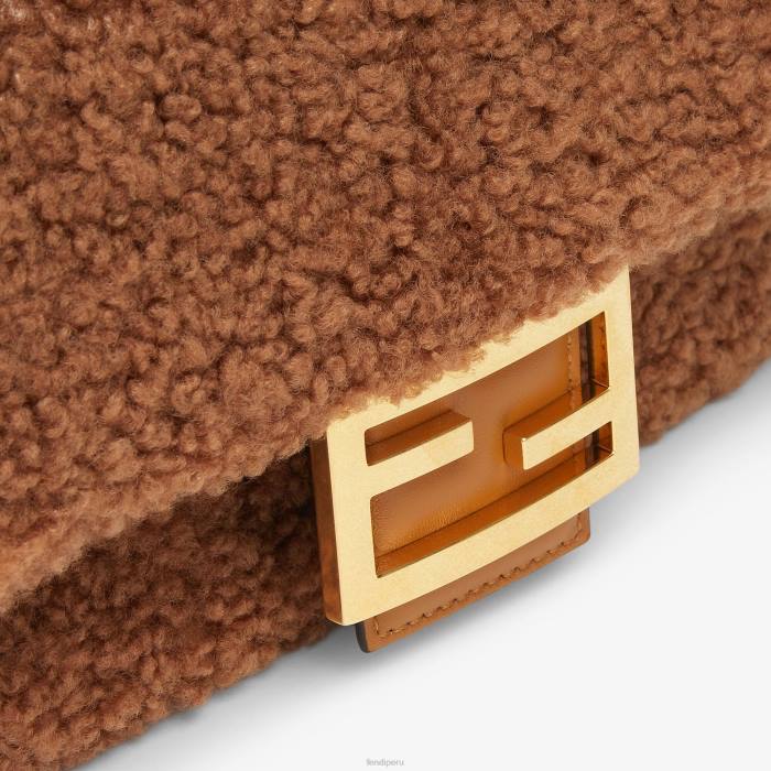 Icónico bolso baguette mediano con cadena, confeccionado en suave piel de oveja de color marrón y decorado con cierre ff.