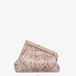 Primer bolso fendi del tamaño perfecto para el día, confeccionado en exquisita piel de pitón rosa empolvado con cierre en forma de F de metal de gran tamaño ribeteado en piel de pitón tono sobre tono.