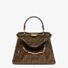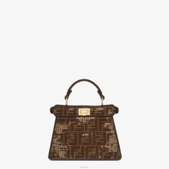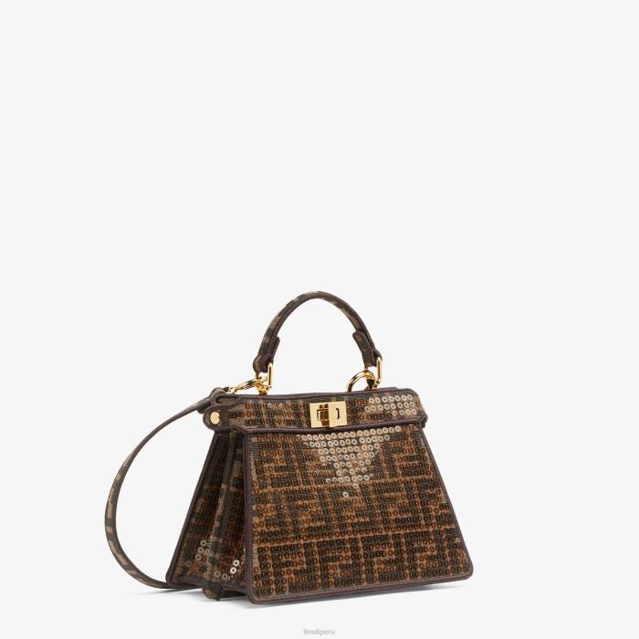 El icónico bolso peekaboo iseeu en un tamaño ideal y compacto. Confección en tejido con motivo ff de jacquard bordado integralmente con lentejuelas transparentes brillantes. decorado con el icónico cierre giratorio en ambos lados.