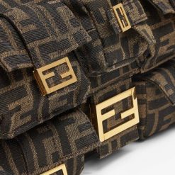 Bolso baguette multibolsillos confeccionado en tejido con motivo ff en jacquard, con cinco bolsillos aplicados de diferentes tamaños. los bolsillos y la solapa delantera están decorados con el icónico cierre ff.