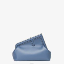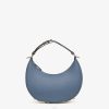 Primer bolso Fendi del tamaño perfecto para el día, confeccionado en suave napa azul, con cierre oversize de metal en forma de F ribeteado en napa tono sobre tono.