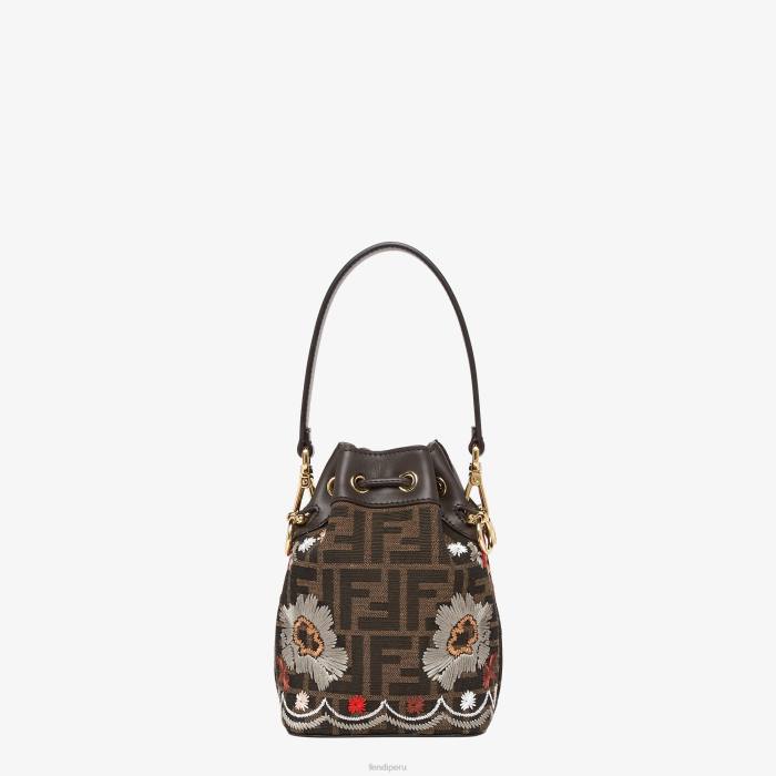 Bolso saco pequeño mon tresor confeccionado en tejido jacquard con motivo ff, delicadamente bordado con un motivo floral en hilo multicolor.