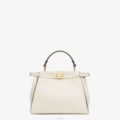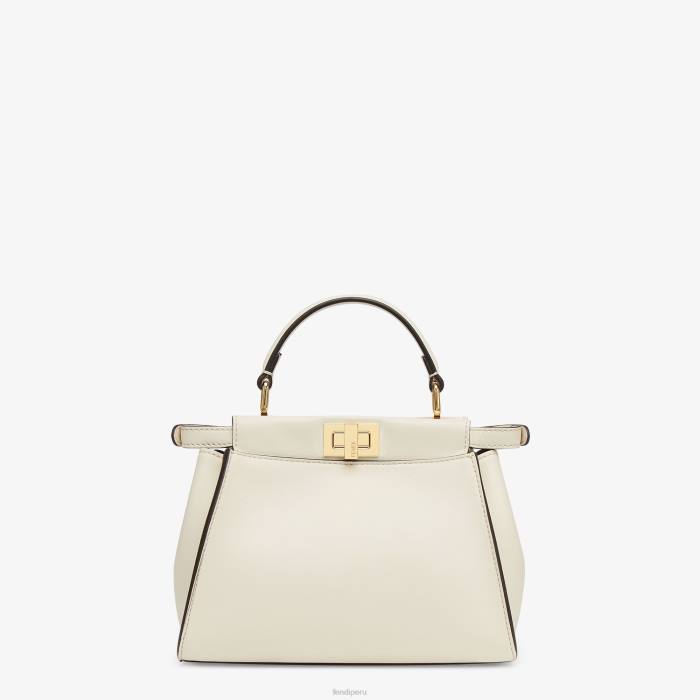 icónico bolso peekaboo pequeño confeccionado en piel blanca y adornado con el clásico cierre de giro en ambos lados.