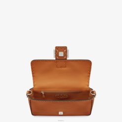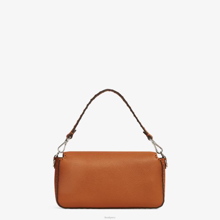 icónico bolso baguette mediano, confeccionado en piel cuoio romano marrón adornado con costuras oversize hechas a mano tono sobre tono. decorado con un cierre ff.