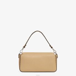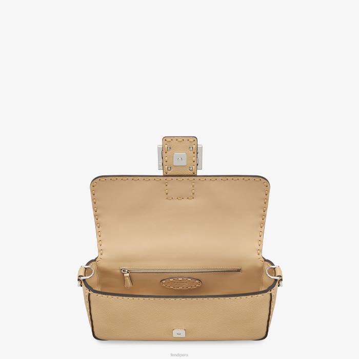 Icónico bolso baguette mediano, confeccionado en piel cuoio romano color arena adornado a mano con costuras a juego. decorado con un cierre ff.