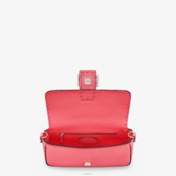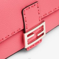 Icónico bolso baguette mediano, confeccionado en piel cuoio romano rosa adornado a mano con costuras a juego. decorado con un cierre ff.