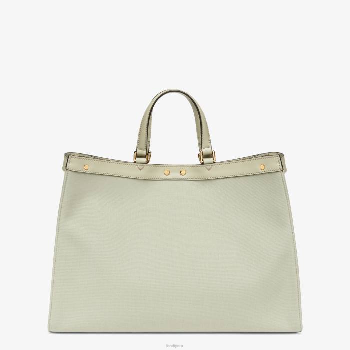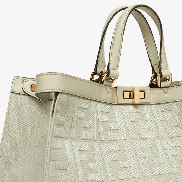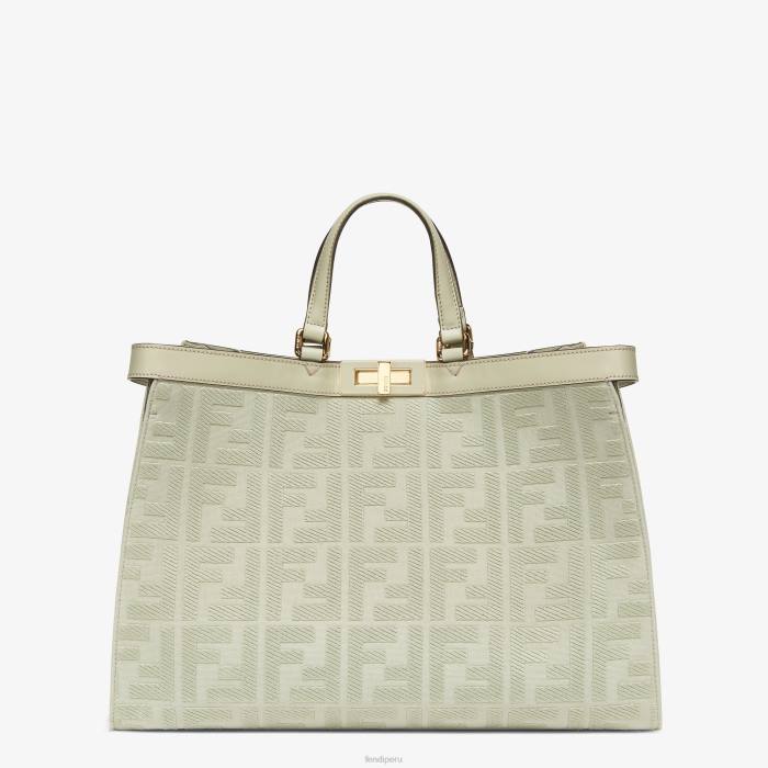 Bolso tote mediano x confeccionado en lona verde claro con motivo ff bordado en relieve tono sobre tono. ribeteado en piel tono sobre tono y decorado con el clásico cierre de giro.