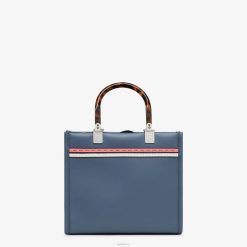 Bolso shopper pequeño Sunshine confeccionado en piel azul con inscripción Fendi Roma estampada en caliente y asas rígidas de plexiglás en carey.