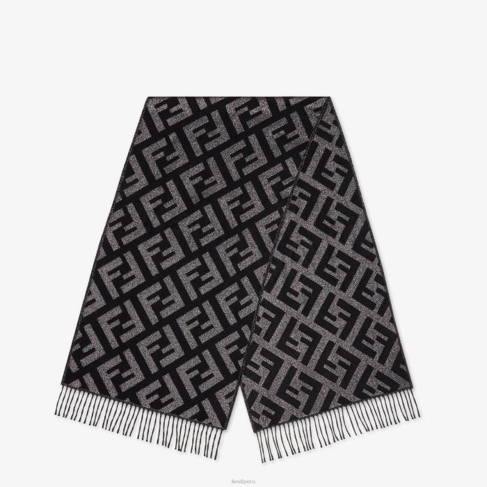 Pañuelo largo rematado con flecos. Confeccionado en cashmere verde ácido e hilo de lúrex negro. el tejido jacquard crea el icónico patrón ff en un color en contraste.