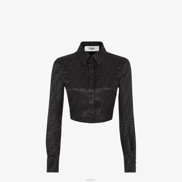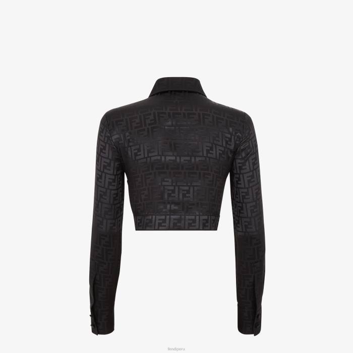 camisa corta de manga larga. Cierre con botones ocultos. Confección en crepé de seda con motivo ff de jacquard en color negro.