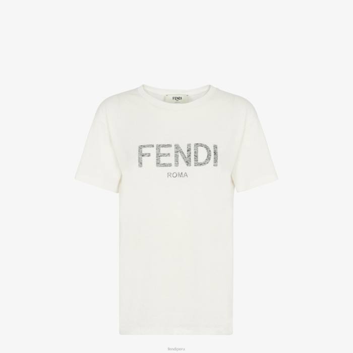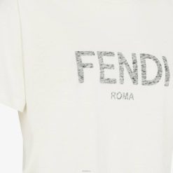 Camiseta regular fit de manga corta y cuello redondo. confeccionado en ligero jersey de algodón blanco crema. personalizado en la parte delantera con el texto fendi estampado con efecto desgastado en contraste.