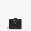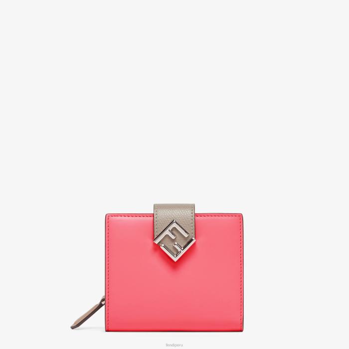 Cartera compacta ff rombos con detalle de ff en diagonal, bolsillo externo de fuelle y cremallera en tres lados. en su interior tiene 2 bolsillos planos y 8 ranuras para tarjetas. broche de cierre. Confección en piel rosa y gris tórtola. artículos de metal con acabado dorado.