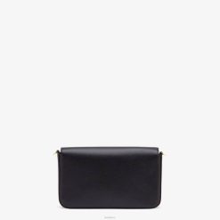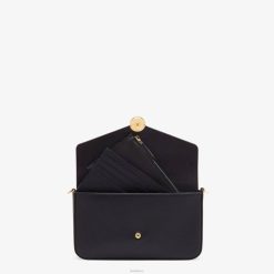 minibolso con solapa geométrica decorada con el logo de fendi. cierre con botones a presión. equipado con dos bolsos interiores extraíbles, uno con cremallera y otro con ocho ranuras para tarjetas. Correa de hombro de cadena desmontable. forro con bolsillo plano. Confección en piel crucero abatanada negra. Detalles de piel bicolor. artículos de metal con acabado dorado.