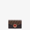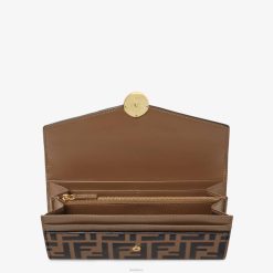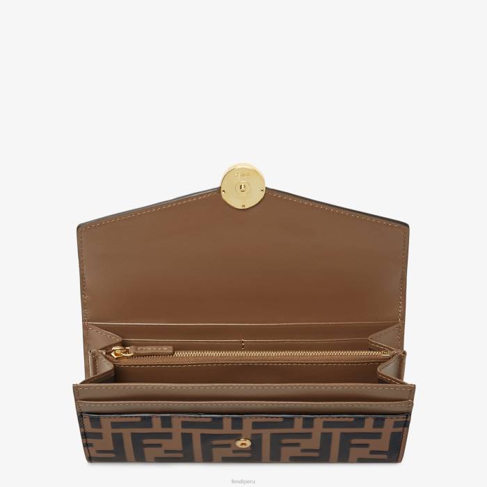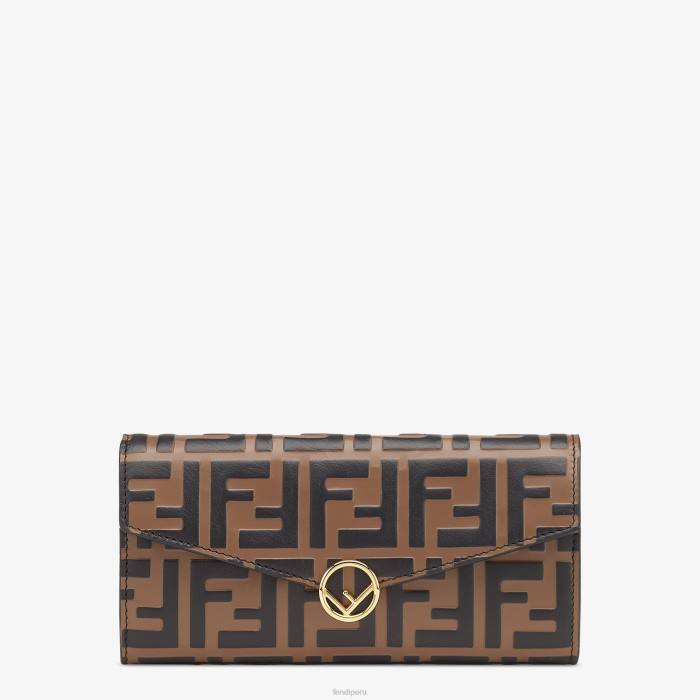 Cartera continental f is fendi cerrada con un botón de presión. espacioso y bien organizado, con dos bolsillos con fuelle, un bolsillo con cremallera, diez ranuras para tarjetas y bolsillos laterales planos. fabricado en cuero marrón. rematado con motivo ff grabado y pintado a mano. artículos de metal con acabado dorado.