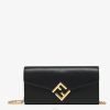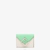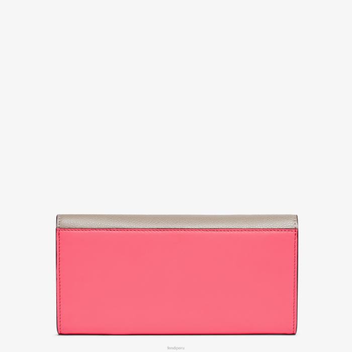 Cartera continental de diamantes ff con solapa con forma geométrica, logo ff en diagonal y fina correa de cadena extraíble. el interior se presenta como una cartera con dos compartimentos reforzados, un bolsillo con cremallera, dos bolsillos planos y diez ranuras para tarjetas. Confección en piel rosa y gris tórtola. artículos de metal con acabado dorado.