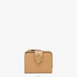 Cartera ff diamantes dividida en seis ranuras para tarjetas, un compartimento para billetes, un bolsillo monedero con cremallera y un bolsillo trasero. Confeccionado en piel color beige. artículos de metal con acabado dorado.