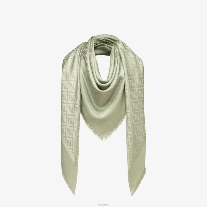 Mantón grande confeccionado en suave mezcla de lana y seda, adornado con hilo de lúrex verde claro con el icónico motivo ff en tono a juego. acabado con dobladillos deshilachados a mano.