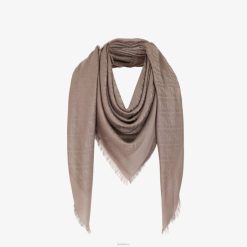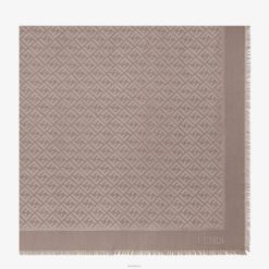 Mantón grande confeccionado en suave mezcla de lana y seda, adornado con hilo de lúrex gris tórtola con el icónico motivo ff en tono a juego. acabado con dobladillos deshilachados a mano.