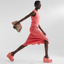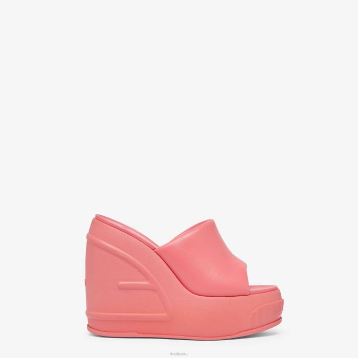 Chanclas de plataforma con banda ancha presentadas durante el desfile primavera/verano 2023. Confección en piel de napa de color rosa intenso. suela de plataforma de goma con motivo ff oversize en relieve.