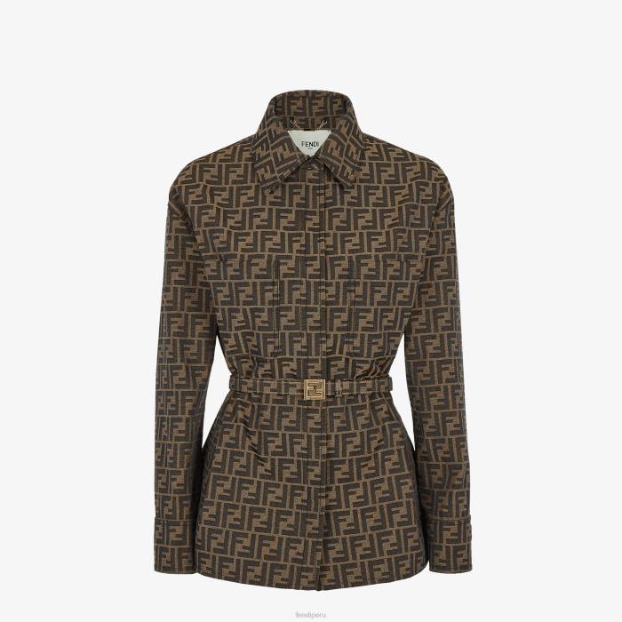 Chaqueta de botonadura sencilla con cuello camisero y mangas escotadas. Cinturón a juego con hebilla metálica ff. Bolsillos de parche de gran tamaño en el pecho. Confección en lona con motivo ff jacquard en tonos marrones.