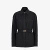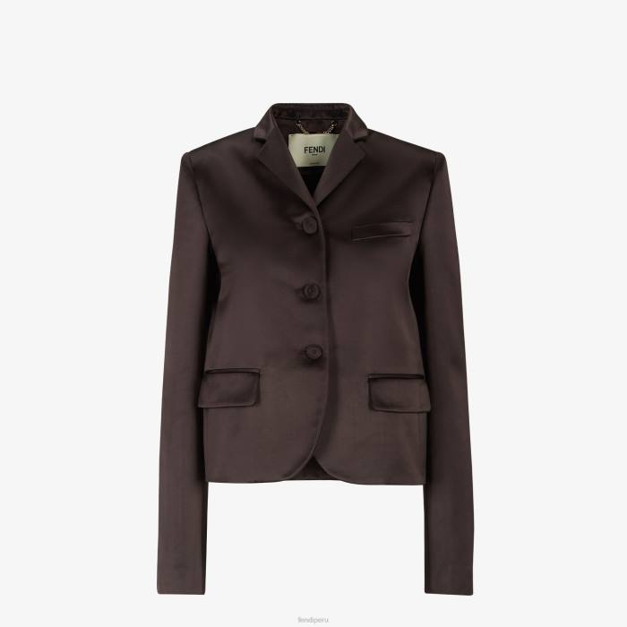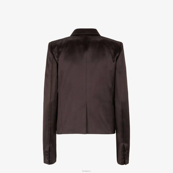 Chaqueta corta de botonadura simple con cuello de solapa pequeña, manga sisa y abertura central en la espalda. Bolsillo en el pecho y bolsillos con solapa en la parte delantera. cerrado con tres botones forrados. Confeccionado en raso duquesa de seda y algodón marrón con textura lavada. acabado con microinscripción “fendi roma made in italy” bordada en tono a juego en la parte posterior de la manga izquierda.