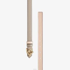 Cinturón reversible con trabilla y hebilla con tachuelas ff en diagonal. Confeccionado en piel gris tórtola por un lado y piel rosa pálido con estampado ff grabado en el otro. artículos de metal con acabado dorado.